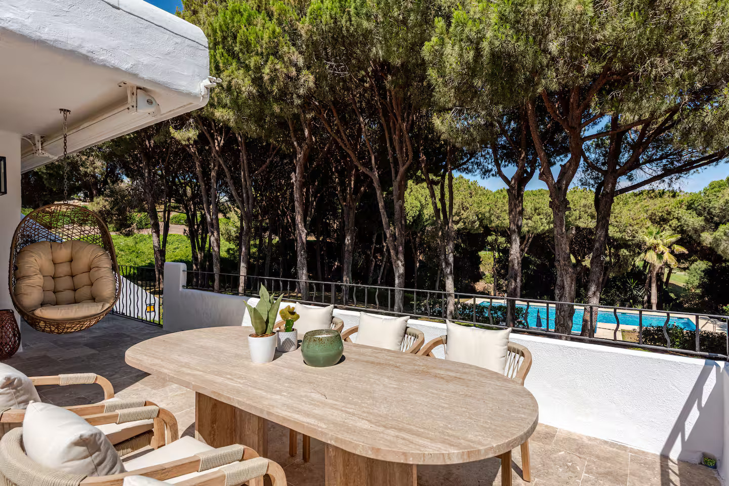 2019 von Dirk und Anja gekauft und liebevoll renoviert, kombiniert die Villa höchsten Wohnkomfort mit der Ruhe eines Privatgrundstücks – mit Community Pool, Ibiza-Style Lounge, Terrasse und mediterranem Garten mit Golfplatz-Blick.